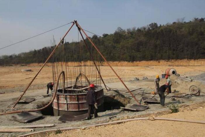 1、選擇井口位置,按要求挖一口直徑與鉆頭相同、深度與鉆頭大致相等的圓井,將鉆頭放入其中。
